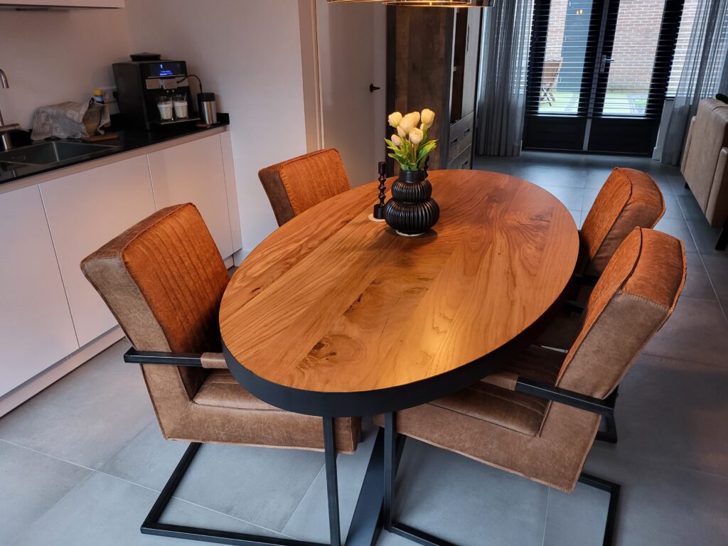 Hout is een natuurproduct. De natuur ontwikkelt zich altijd door. Wij geloven erin dat hout zich ook blijft ontwikkelen. Hout brengt een energie met zich mee. Een energie die we ook wel als sfeer omschrijven. Voor een ultieme sfeerbeleving aan tafel kan een houtenmeubel niet ontbreken. Bekijk onze Facebookpagina om op de hoogte te blijven van ons assortiment. U kunt ons ook inhuren voor een op maat gemaakte tafel. U deelt uw wens, wij maken er werk van.